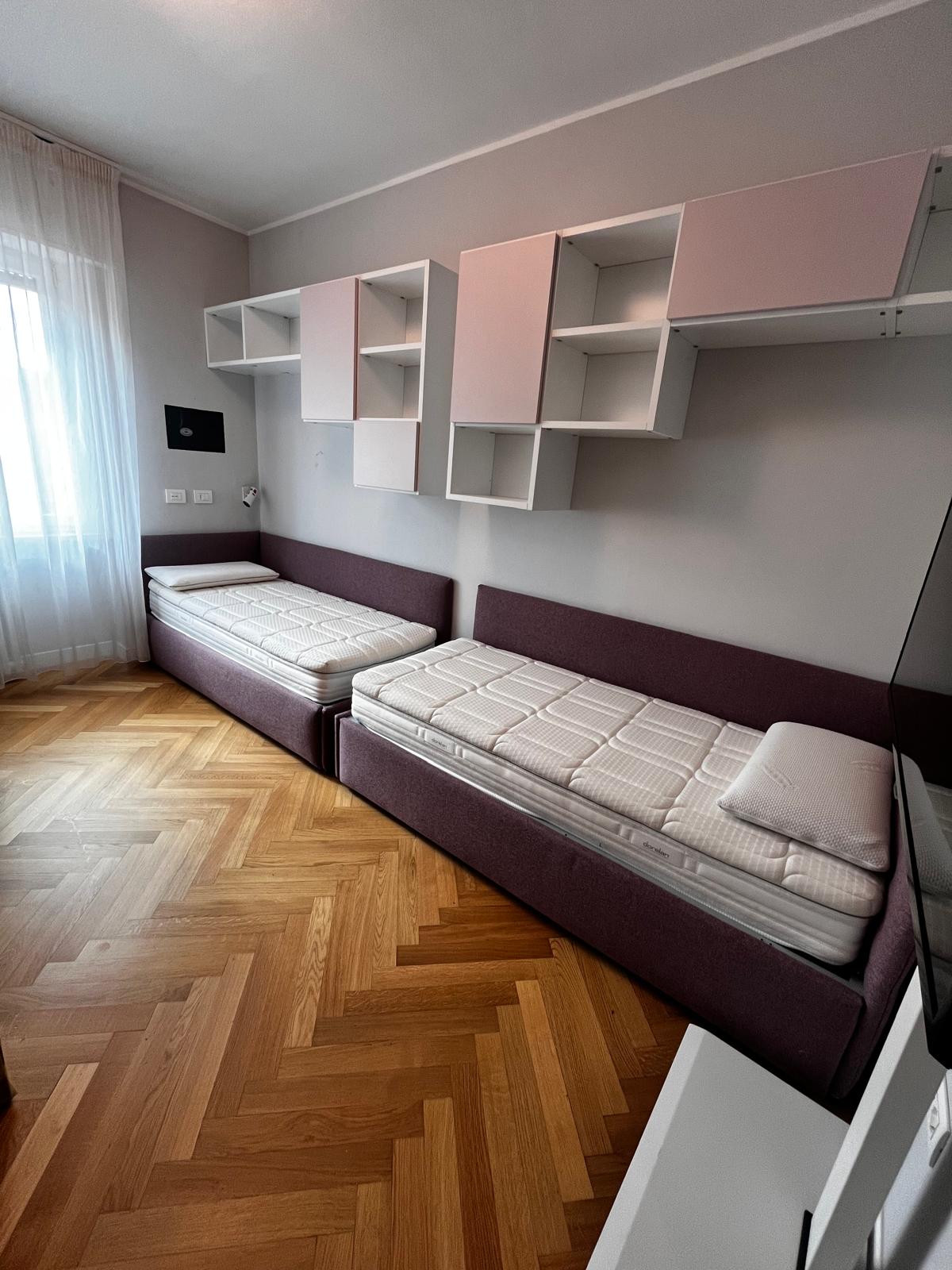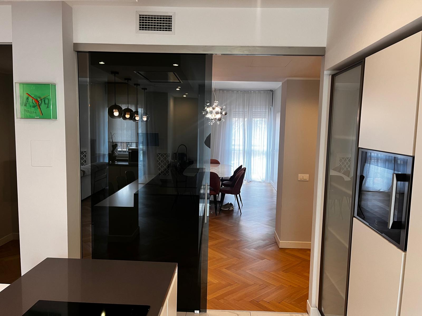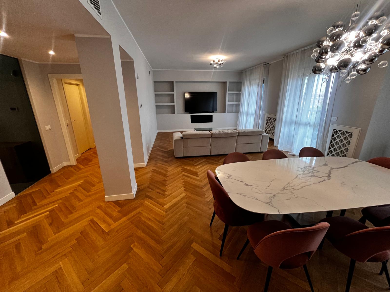 Abitare 24 propone in vendita un ampio quadrilocale semi-arredato di 174 mq in Piazzale Brescia, al sesto piano di un elegante stabile con doppio ascensore e servizio di portineria per l’intera giornata. L’appartamento, ristrutturato integralmente nel 2019, si apre su un ingresso con armadiature su misura che conduce a un luminoso soggiorno triplo contenente un ripostiglio/lavanderia, arricchito da un terrazzino con affaccio arioso. La cucina abitabile, realizzata su misura dal marchio Lube, è completa di balcone, cantinetta vini e cappa aspirante a soffitto Falmec. La zona notte comprende una camera matrimoniale con arredi su misura e altre due camere da letto, servite da due bagni moderni, di cui uno finestrato, entrambi rivestiti in gres porcellanato bianco e corredati da mobili realizzati su misura. Le finiture sono di altissimo livello: pavimentazione in parquet di rovere massello a listoncini da 2 cm in tutta la casa, infissi PVC con doppio vetro, porta blindata, lampadari di design realizzati su misura e impianto elettrico completamente rifatto dotata di impianto di semi-domotica con tapparelle a comando elettrico centralizzato per la chiusura totale e comando elettrico centralizzato anche per l’illuminazione. L’immobile è inoltre dotato di riscaldamento a radiatori con termovalvole in ogni stanza, climatizzazione canalizzata a pompa di calore con gestione della temperatura indipendente grazie a un termostato in ogni ambiente, boiler a gas esterno per l’acqua calda e impianto antifurto. L’arredamento comprende cucina completa, armadiatura del corridoio, bagni completi di arredi e arredo camera matrimoniale e lampadari. Completa la proprietà una cantina di 6 mq. La posizione è strategica e molto apprezzata: ottimamente servita dalla metropolitana MM con le fermate De Angeli e Amendola, oltre che da tram (il 16 a 100m di distanza) e linee di autobus che collegano rapidamente con il centro. La zona offre negozi di ogni genere, supermercati, scuole, ristoranti, palestre. La richiesta è di € 1.020.000 con spese condominiali pari a circa € 5.700 annue.