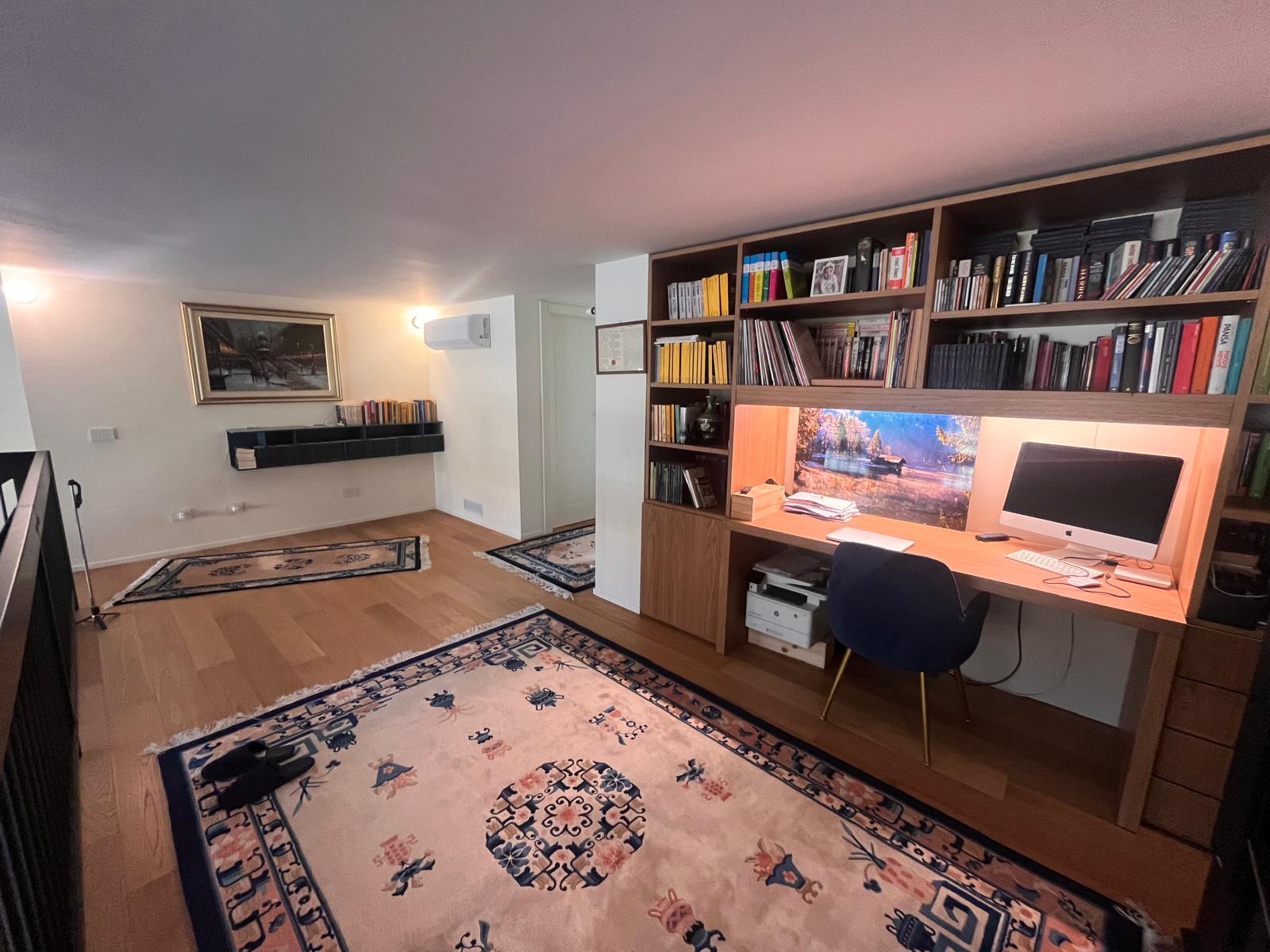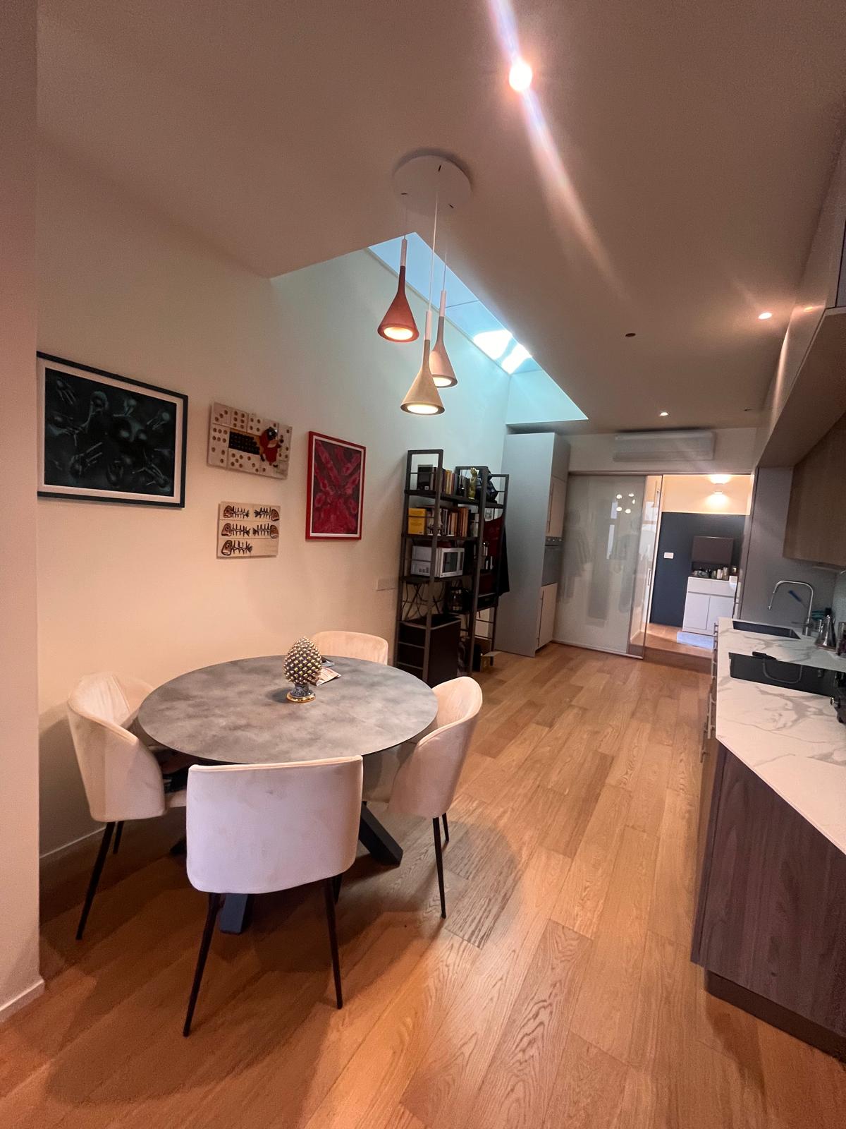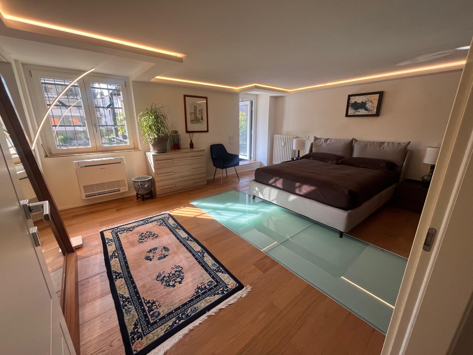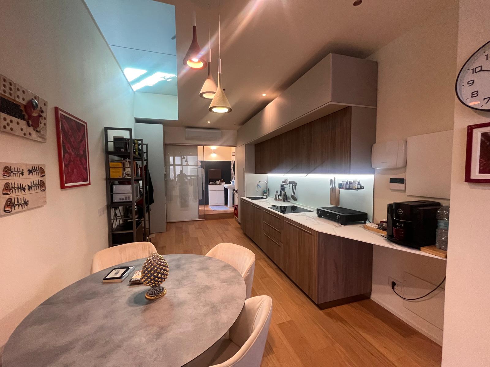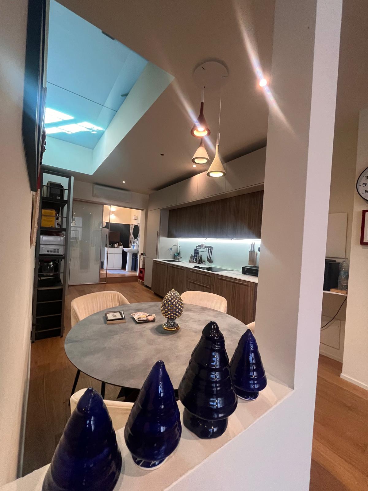 Varcando la soglia al piano terra, si viene accolti da un’ampia zona living inondata di luce naturale grazie a spettacolari vetrate a tutta altezza che abbattono i confini tra interno ed esterno. Questo spazio generoso ospita una cucina a vista perfettamente integrata, un pratico ripostiglio e un primo elegante bagno. Salendo al piano soppalcato, la zona notte si trasforma in una suite privata d’eccezione: qui troviamo una spaziosa camera matrimoniale dotata di cabina armadio e bagno en-suite, affiancata da un angolo studio ideale per lo smart working e una funzionale lavanderia. Il vero gioiello del piano superiore è lo sbocco diretto sul terrazzo di 18 mq, un’oasi di riservatezza con affaccio interno, perfetta per godersi momenti di relax all’aria aperta in totale tranquillità.