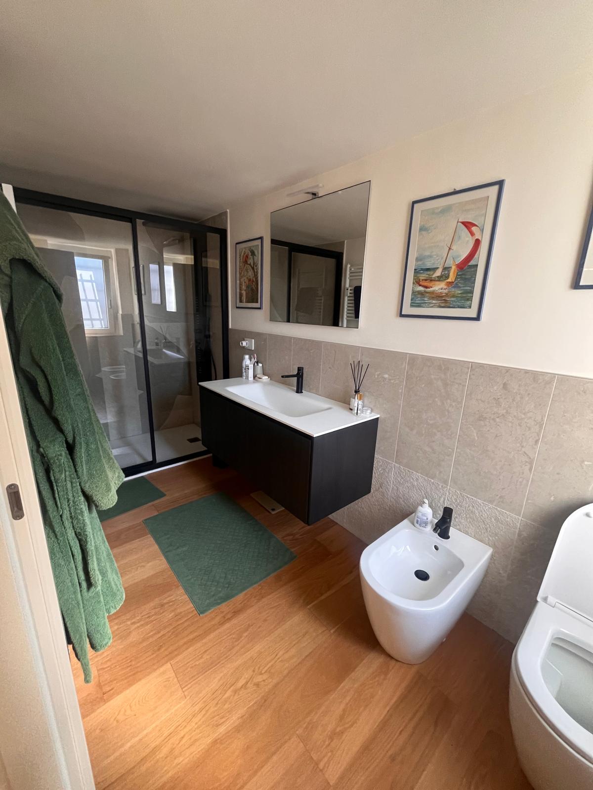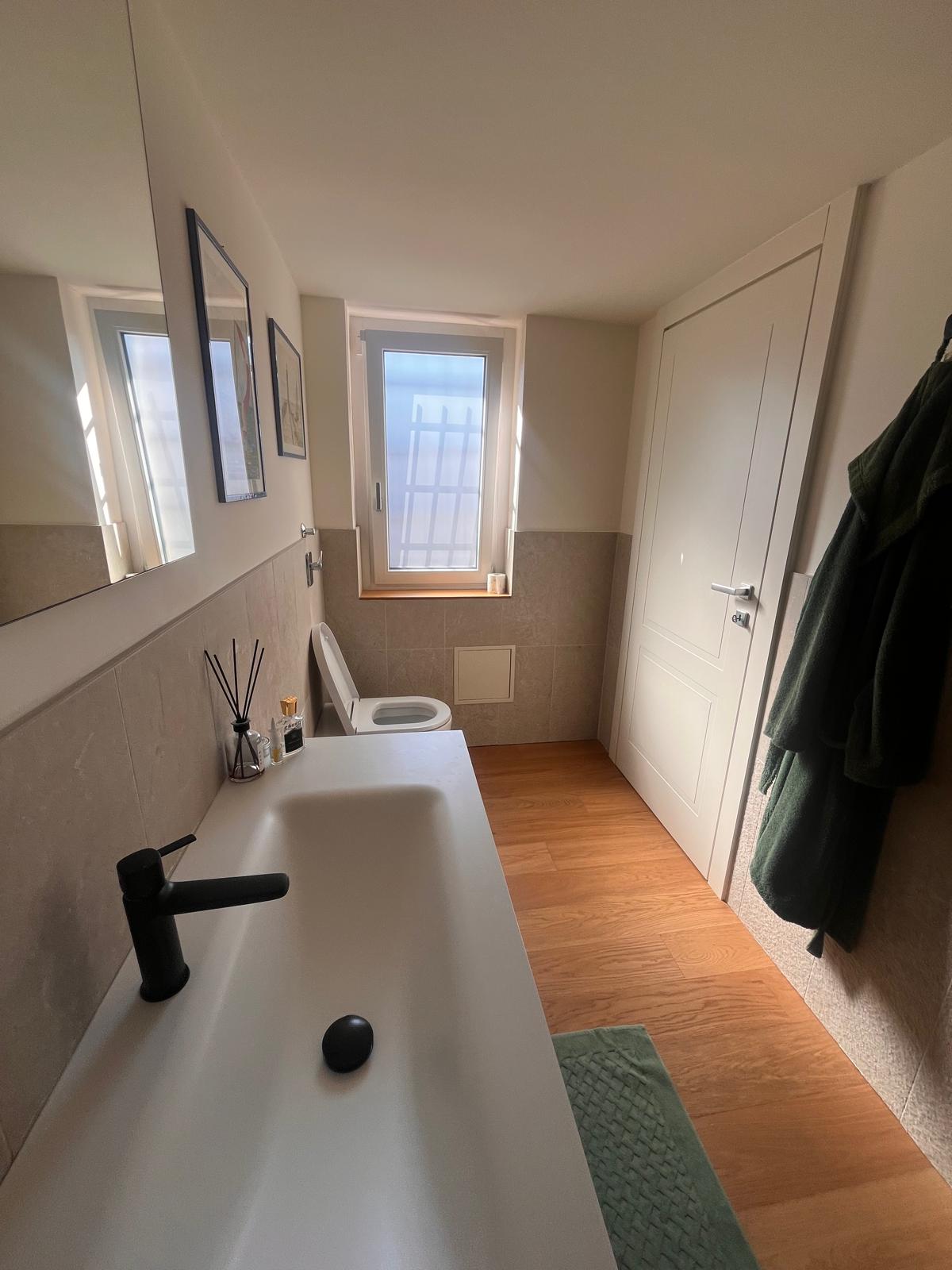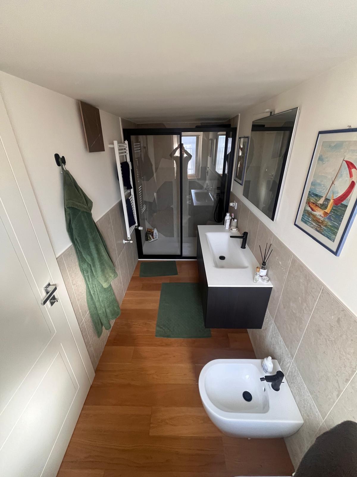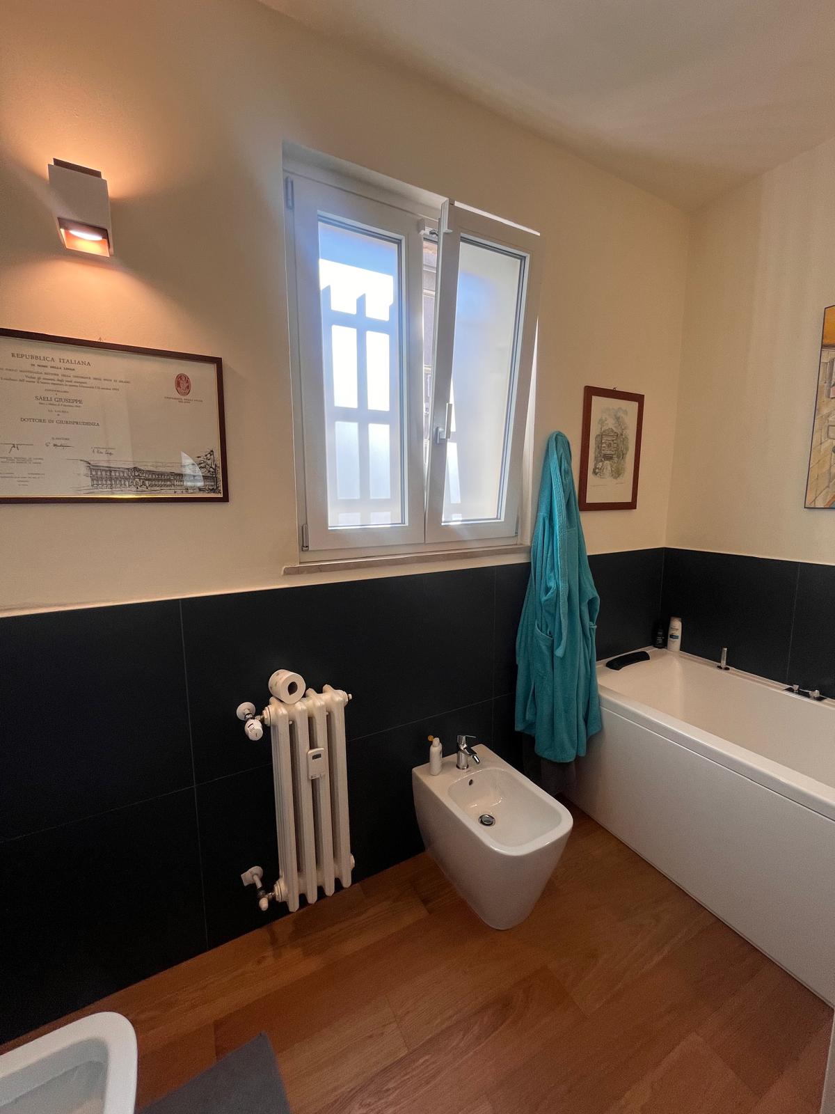 L’appartamento garantisce un benessere abitativo eccellente in ogni stagione grazie all’aria condizionata con pompa di calore che integra il riscaldamento centralizzato a radiatori, con una gestione condominiale che include anche l’acqua calda per una spesa annua di circa 3.500 euro.