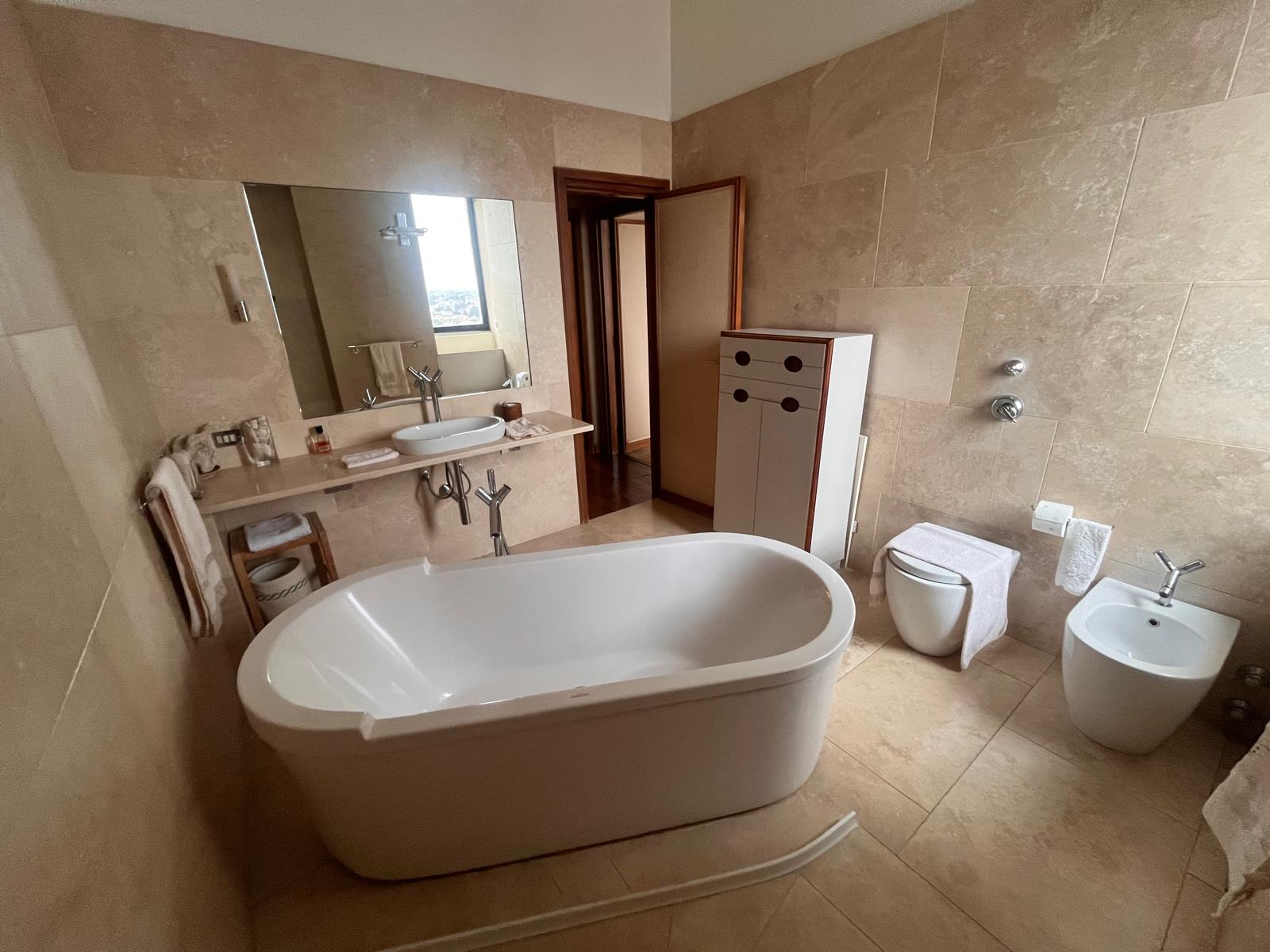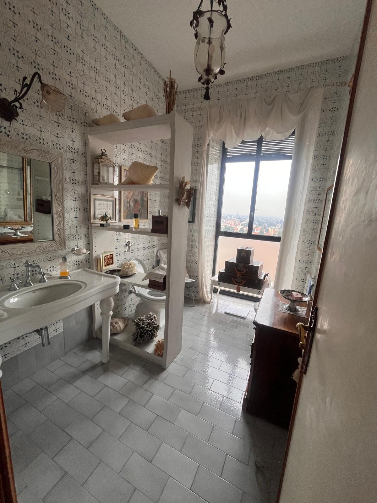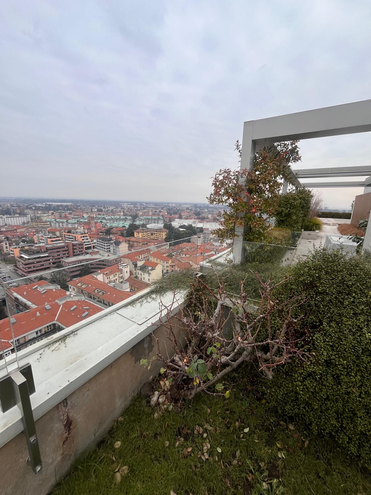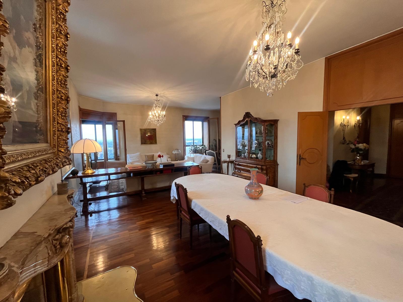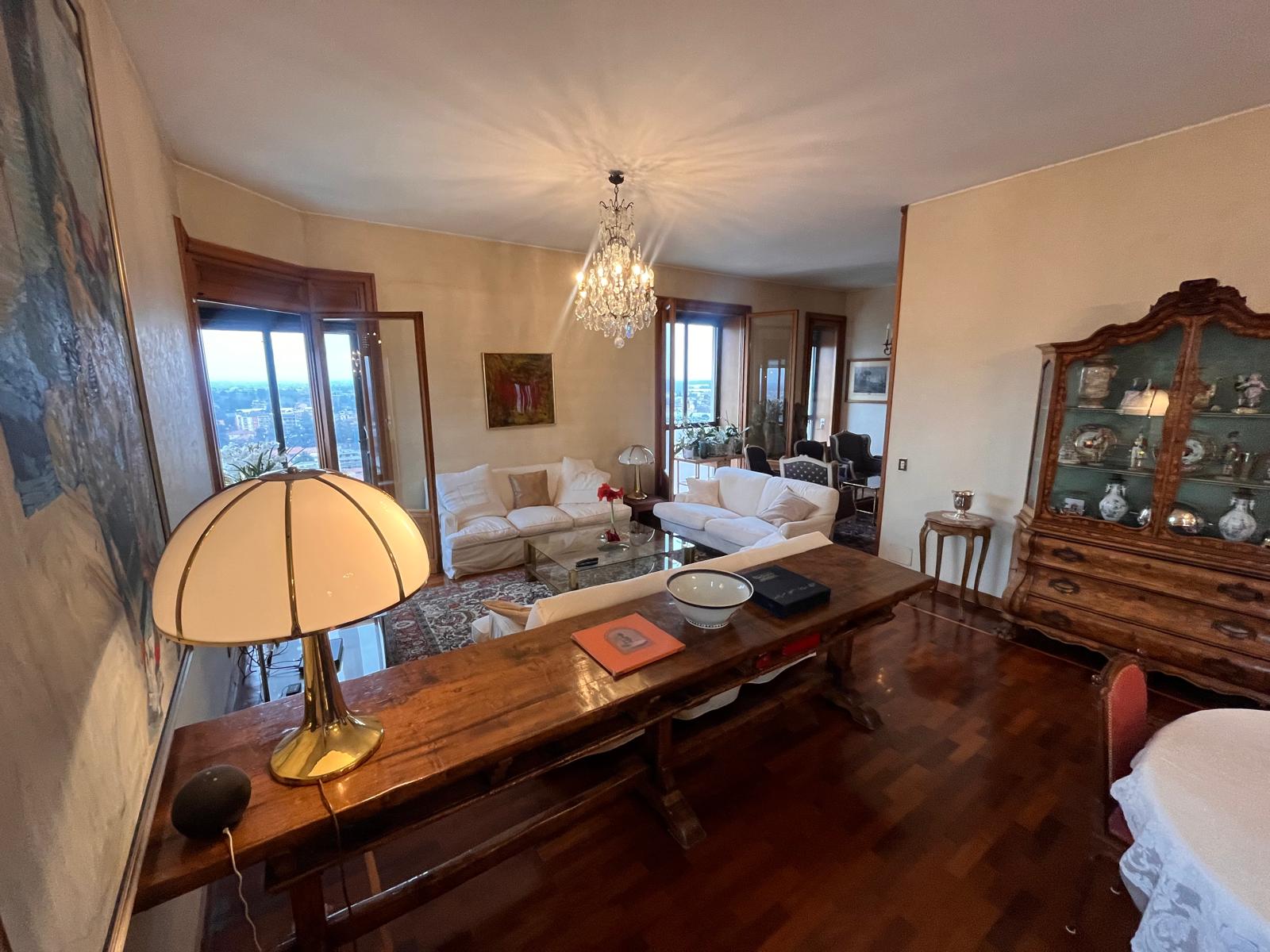 Abitare 24 propone nel cuore di Legnano, in posizione centralissima e comodissima a tutti i servizi, proponiamo un attico e superattico di assoluto prestigio, situato al diciassettesimo e diciottesimo piano dello storico grattacielo cittadino progettato dal celebre architetto Caccia Dominioni. Una residenza di rara eleganza che conquista fin dal primo sguardo per gli ampi volumi, i soffitti superiori ai tre metri, il parquet in legno massello chiodato, la straordinaria luminosità e la vista panoramica aperta sulla città e sulle montagne. Il diciassettesimo piano accoglie con un ingresso di grande rappresentanza che introduce al magnifico salone di oltre 100 mq, articolato in una raffinata zona living con camino in marmo e in una sala da pranzo separata, impreziosita da affreschi che donano carattere e unicità all’ambiente. La cucina è abitabile, con tinello, pensata per un utilizzo quotidiano comodo e funzionale. Completa la zona giorno un elegante studio con boiserie artigianale su misura, ideale come spazio di lavoro o ambiente di lettura. La zona notte, ben disimpegnata e accessibile sia dallo studio sia dal corridoio principale, è composta da tre ampie camere da letto, tre bagni e una comoda lavanderia, garantendo privacy e comfort anche a nuclei familiari numerosi o a chi desidera ambienti ben separati. In fondo alla zona notte si apre un elegante disimpegno che ospita la scenografica scala con corrimano in ferro battuto e finiture di pregio, elemento architettonico di grande fascino che conduce al piano superiore. Il diciottesimo piano si apre su un’ulteriore area living impreziosita da una libreria su misura in legno pregiato e conduce a un grande salone open space, con luminosa sala da pranzo panoramica, una seconda cucina abitabile, un bagno per gli ospiti e una seconda zona living con caminetto, pensata come spazio conviviale e di rappresentanza. Parte del soffitto di questo livello è caratterizzata da una suggestiva copertura vetrata artistica: pannelli in vetro decorato dai toni caldi e avvolgenti che filtrano la luce naturale, creando un’atmosfera scenografica e rendendo l’ambiente unico e ricco di personalità. Le ampie porte finestre scorrevoli si aprono sul magnifico terrazzo piantumato di oltre 150 mq, che avvolge l’abitazione e offre uno spazio esterno esclusivo e riservato, ideale per momenti di relax, pranzi e cene all’aperto, con una vista impareggiabile sulla città e sul panorama circostante. L’immobile è dotato di riscaldamento centralizzato a pavimento e di aria condizionata, canalizzata nella zona giorno e con split nella zona notte, assicurando il massimo comfort in ogni stagione. La proprietà è inserita in un contesto signorile ed esclusivo, con servizio di portineria attivo per l’intera giornata. La residenza si trova in Piazza Mocchetti 22, nel pieno centro di Legnano, una delle zone più ricercate della città per comodità e qualità della vita. Tutti i principali servizi sono raggiungibili a piedi: negozi, ristoranti, scuole, uffici e aree verdi, oltre ai collegamenti ferroviari e stradali che rendono agevoli gli spostamenti verso Milano e l’hinterland. Una soluzione unica per chi desidera vivere il centro città dall’alto, circondato da luce, spazio ed eleganza.