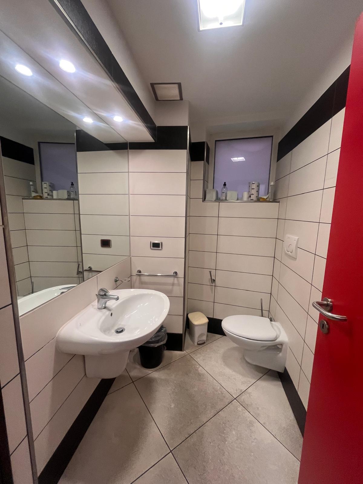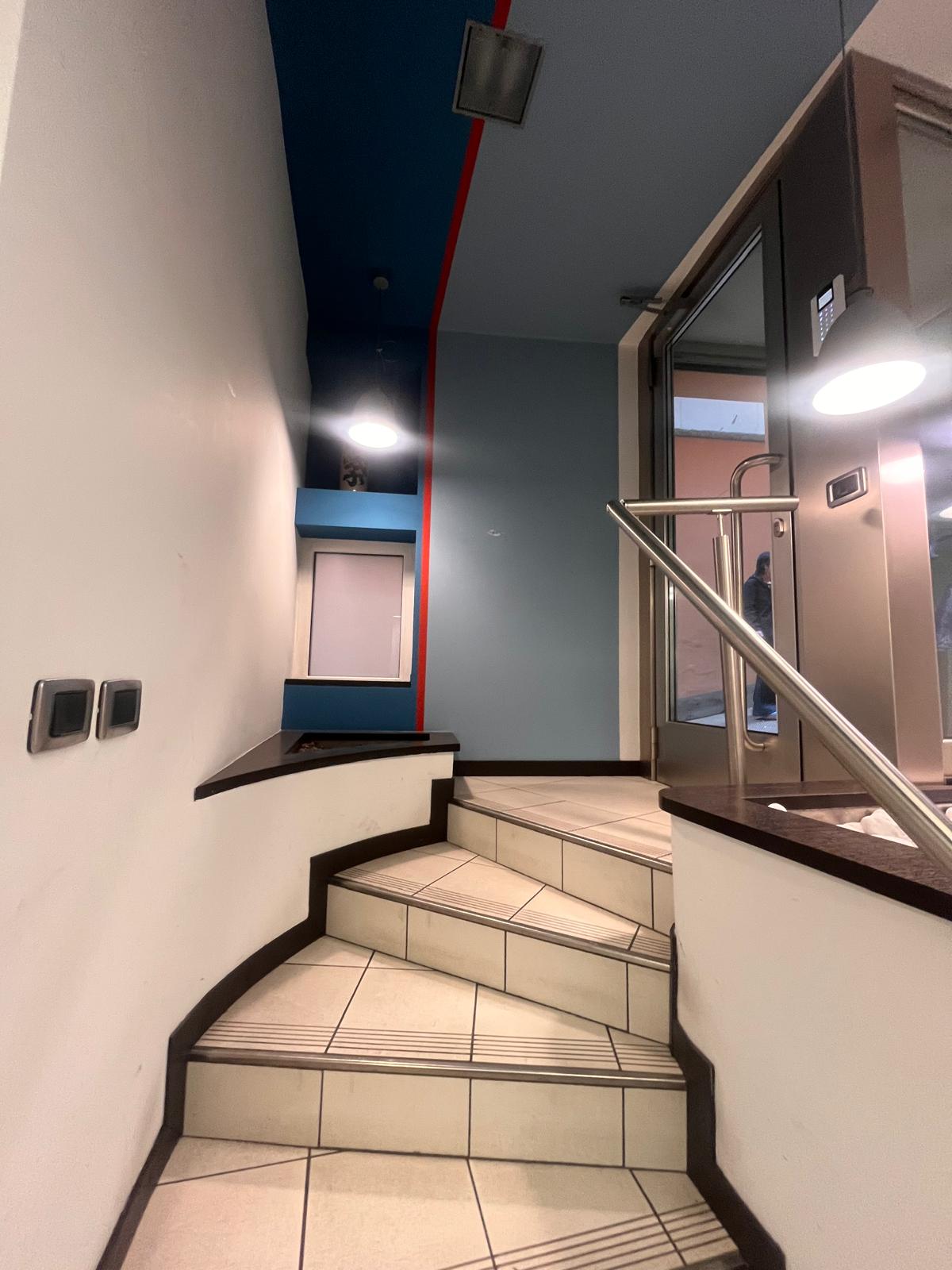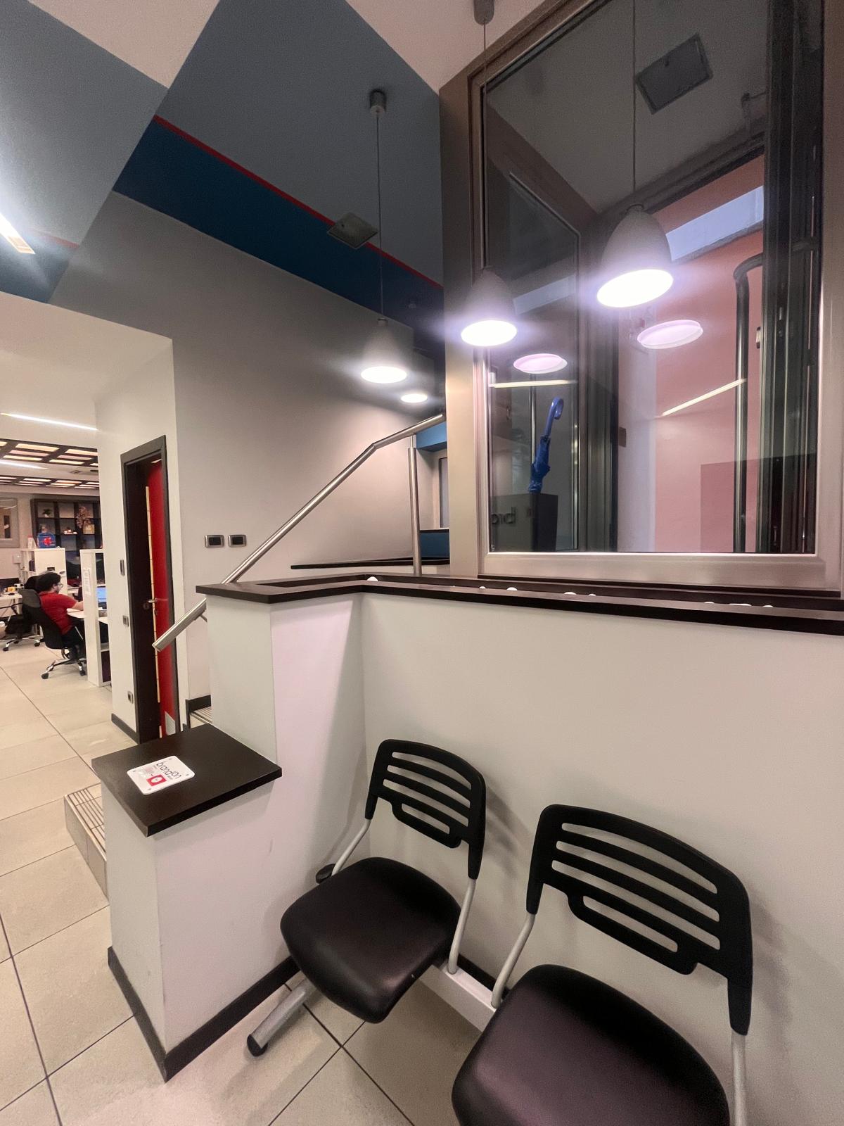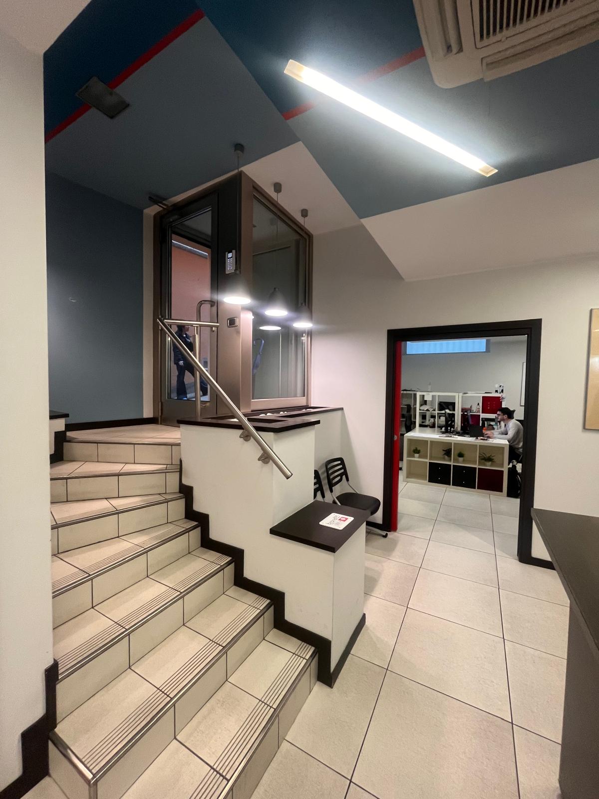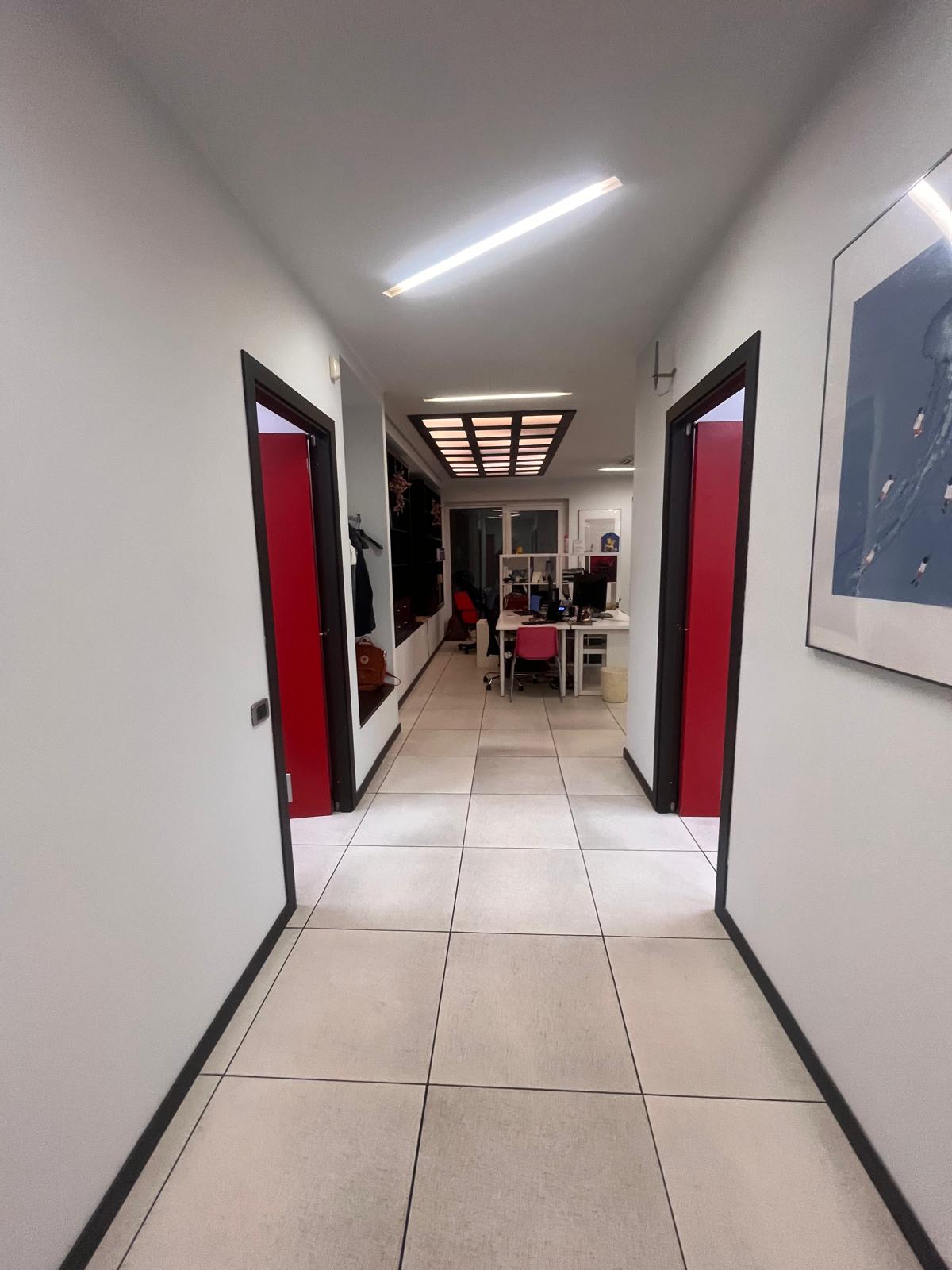 L’ufficio gode di un doppio ingresso indipendente e di un layout estremamente funzionale: l’ampia zona reception accoglie i visitatori introducendoli a una spaziosa sala riunioni caratterizzata da un’altezza interna di 3,40 metri.