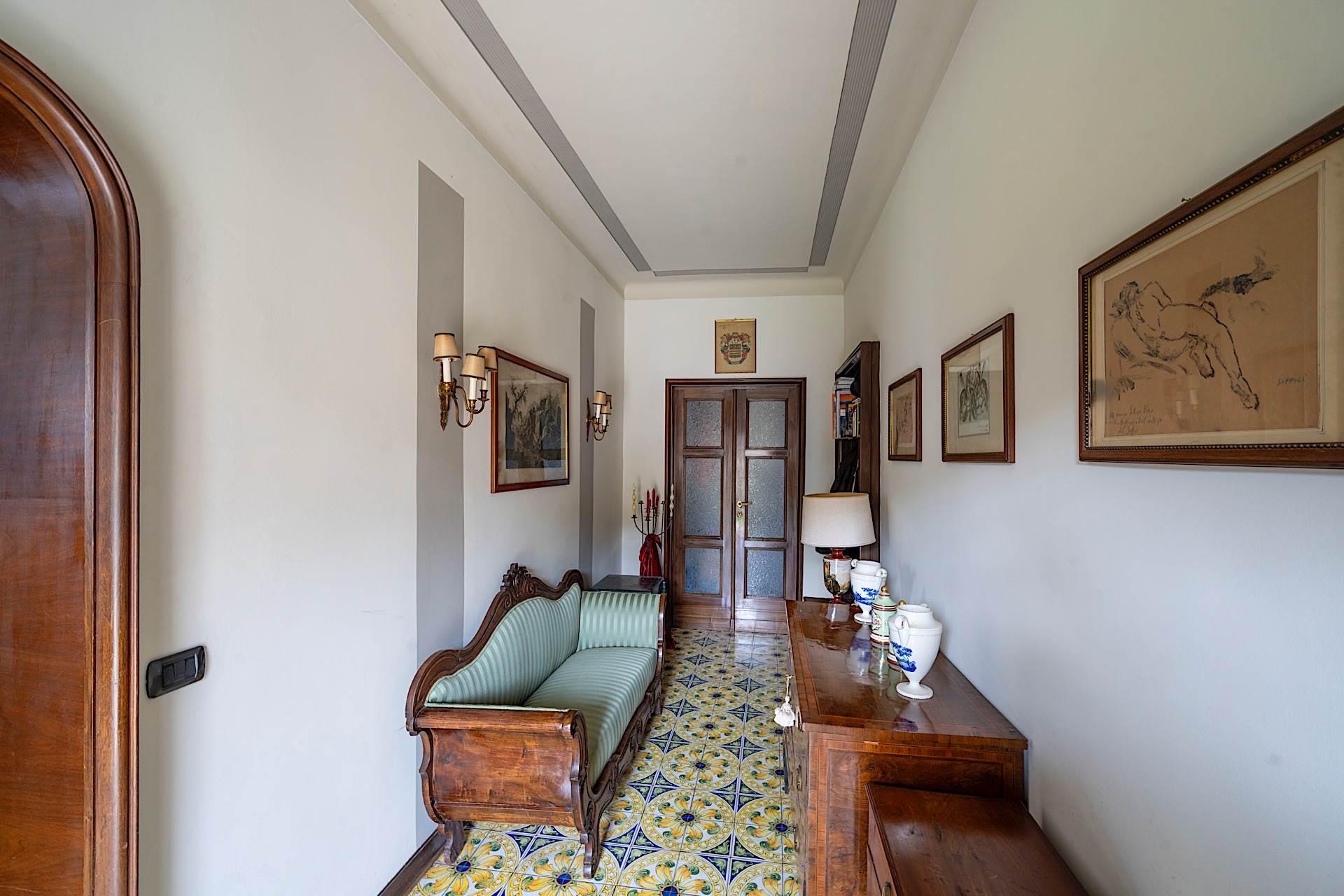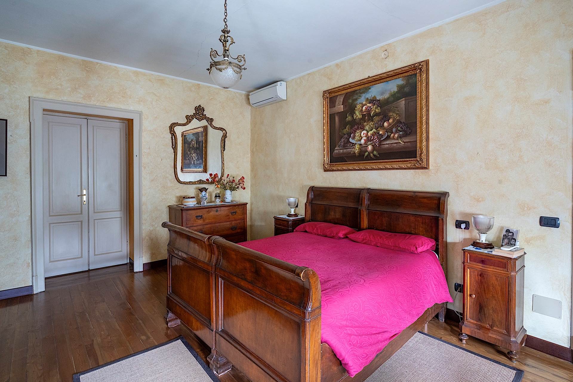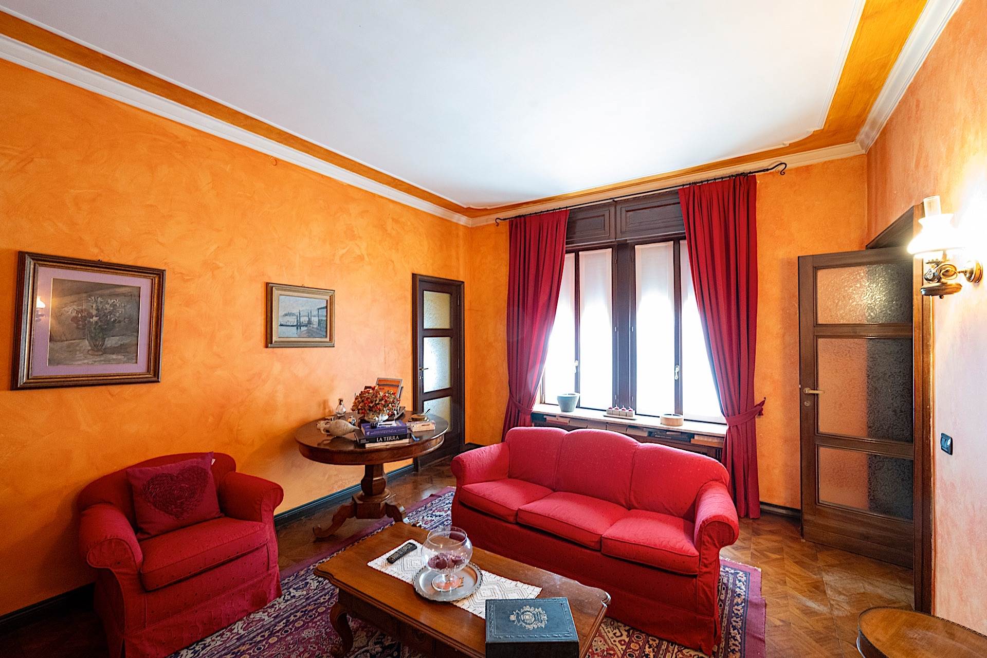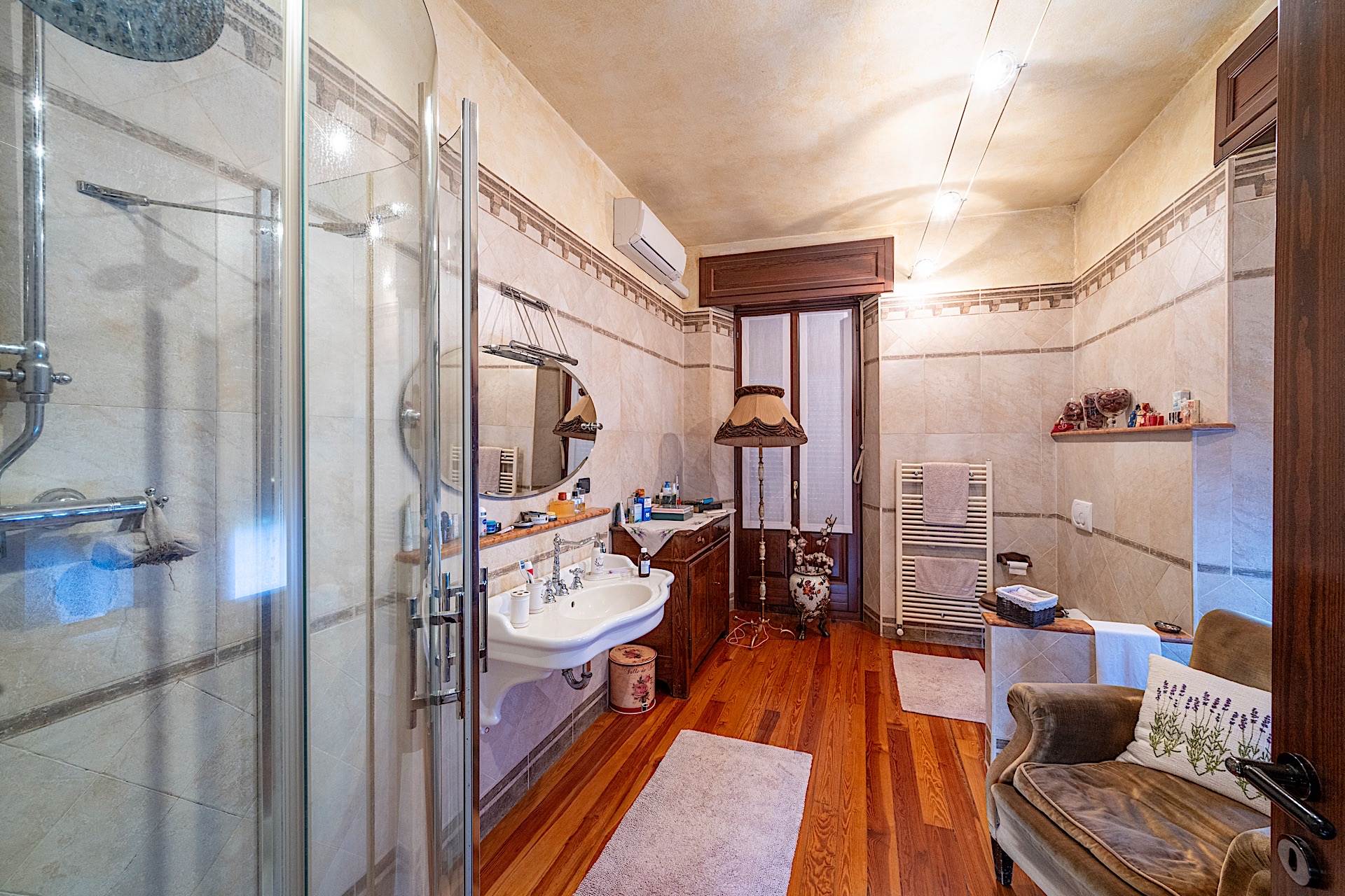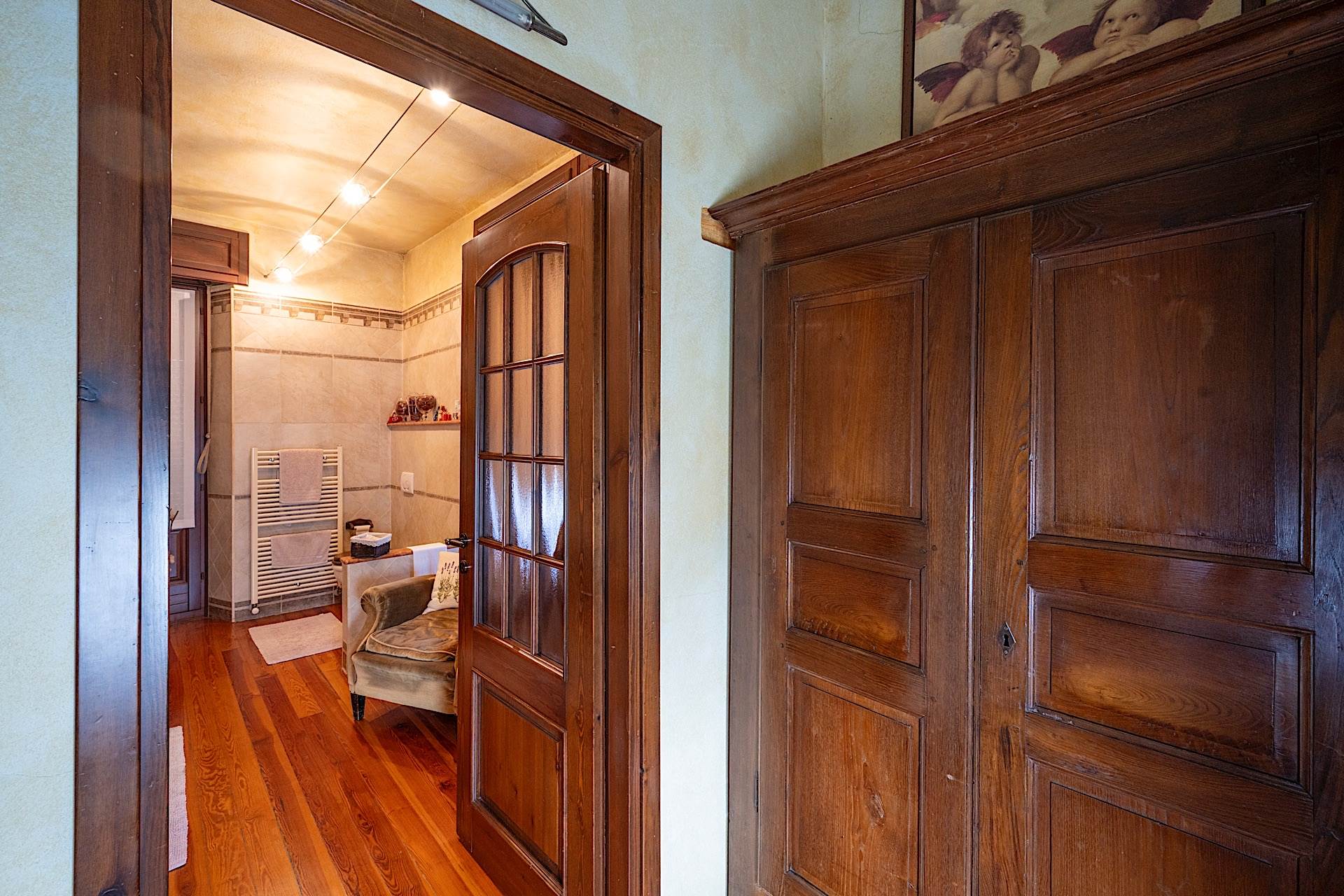 All’esterno, la proprietà è circondata da un giardino completamente pianeggiante di circa 1.500 metri quadrati, uno spazio raro e prezioso in pieno centro, che garantisce privacy e vivibilità. Completano la dotazione un box auto e una legnaia. La villa si presenta in buono stato di conservazione ed è immediatamente abitabile, mantenendo intatto il carattere signorile tipico delle residenze d’epoca.
