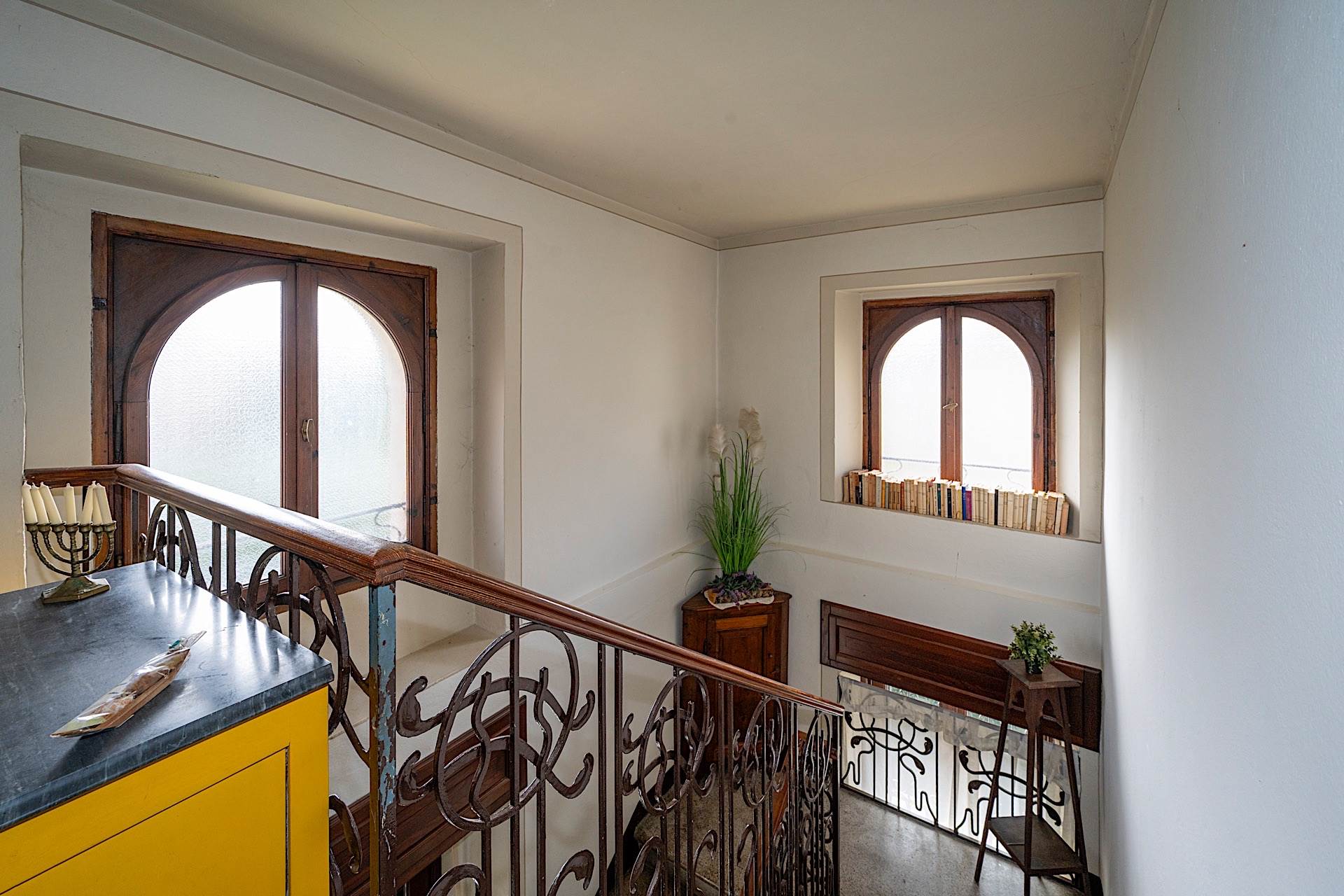 La villa, edificata alla fine dell’Ottocento, si sviluppa su tre livelli principali oltre a un piano seminterrato e a una caratteristica torretta panoramica. Al piano terra rialzato l’ingresso conduce a un disimpegno che distribuisce gli ambienti della zona giorno, composta da un ampio doppio salone, un soggiorno, una cucina con tinello, uno studio o camera, oltre a un bagno. Il primo piano ospita la zona notte principale, con due camere matrimoniali, una delle quali dotata di spogliatoio, bagno privato e balcone; completano il piano un ulteriore bagno, una lavanderia e più terrazzi che offrono piacevoli affacci verso l’esterno. Salendo al secondo piano si trovano un’ulteriore camera con bagno, quattro locali adibiti a solai e un ambiente collocato nella torretta belvedere, ideale come spazio panoramico o stanza di rappresentanza. Il seminterrato è destinato ai locali tecnici.